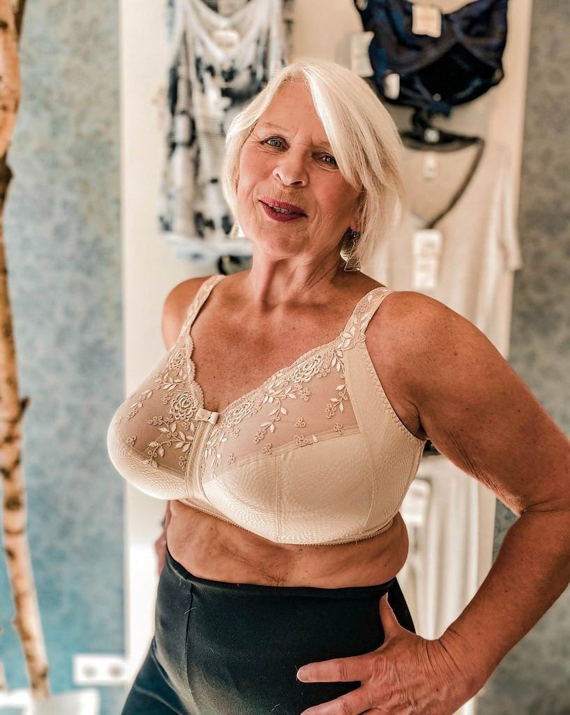 Sexy mature battalion in bras unveils her titties